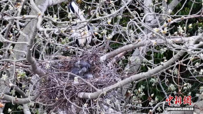 甘肃陇南市白龙江畔苍鹭孵育忙